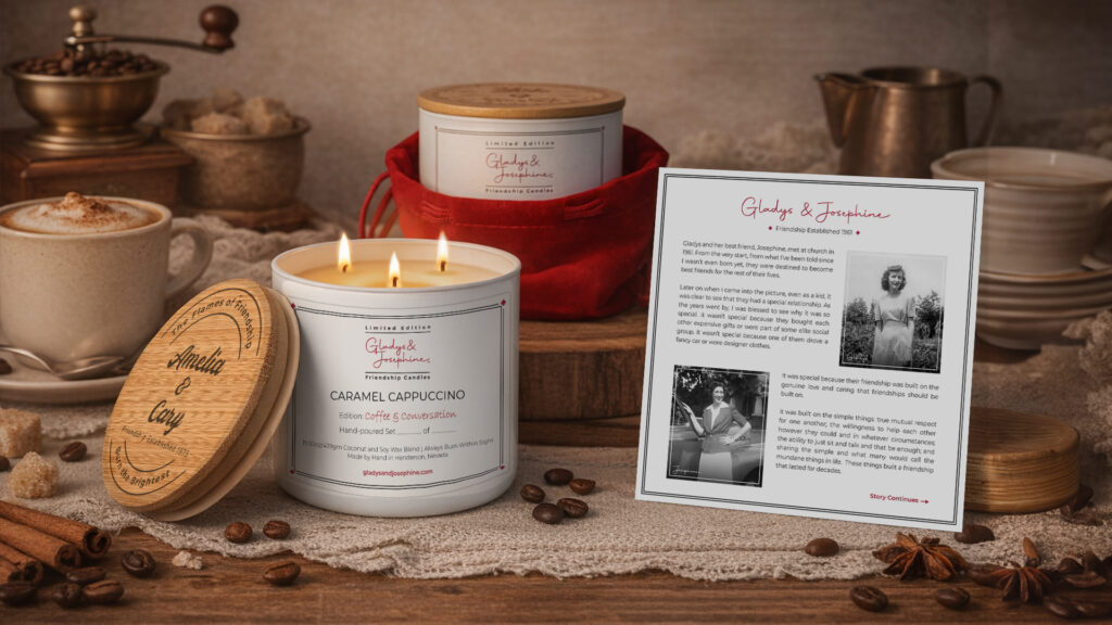 Share the joy of your friendship with matching candles designed to honor your unique bond. Custom engraved with your names and the date your friendship began. A perfect tribute to the connection you share. That’s what makes owning a Gladys and Josephine candle so special!
